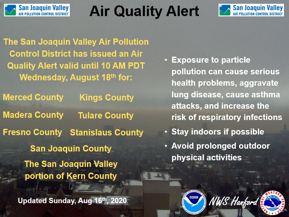 To be valued as a trusted partner delivering exceptional and reliable services for our customers and the community. San Joaquin County District Attorney. San Joaquin Valley air quality officials issued an air quality alert through 5 pm.