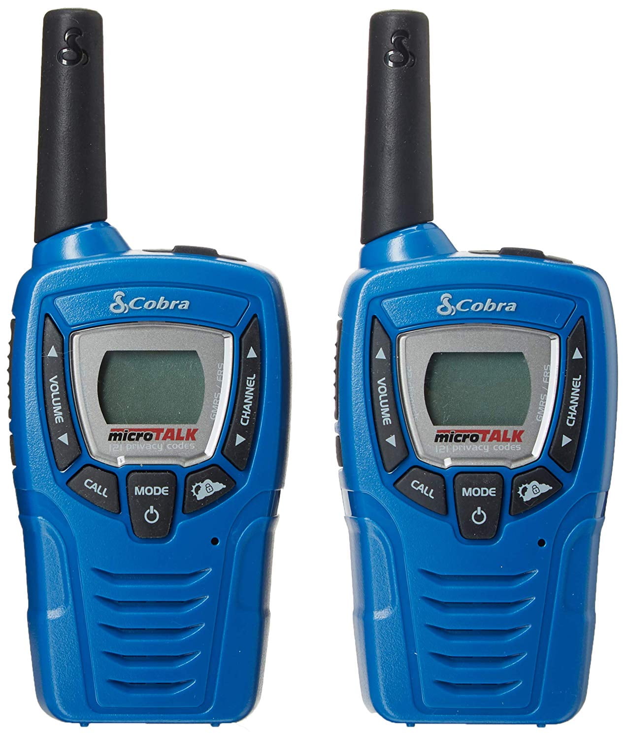 The Cobra CXR700 is a Micro TALK 2-way radio two pack with up to a 25 mile range. The blue Cobra CXT332 25-Mile 2-Way RadiosWalkie Talkies feature a compact design with up to 25-mile range. An integrated NOAA radio in this pair of Cobra walkie-talkies provides current information from all available government weather stations.